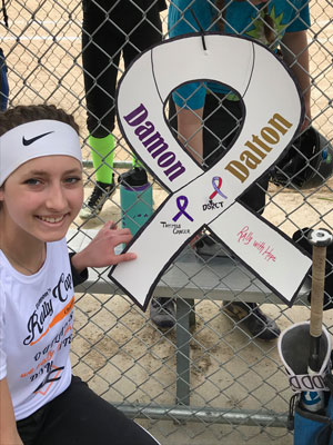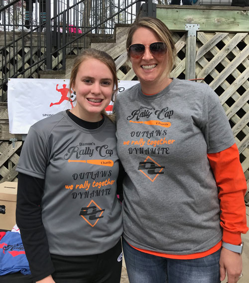 Damon's daughter plays for the DC Dynamite 14U competitive softball team, and a DC Outlaws outfielder was a recent recipient of a Rally Pack. Both teams played in the Charity Challenge Tournament, April 12-14. They competed on the field and chose to raise money for Damon's Rally Cap. We sold t-shirts, passed out flyers and raised over $1,800 for Damon's Rally Cap Charity! |