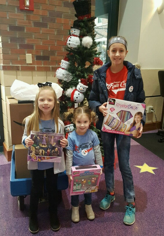 Two of Damon’s Rally Cap Charity’s youngest supporters decided to pay-it-forward in honor of their December birthdays. Kendall (daughter of Damon Owen) and Ella (niece of Damon) hosted a joint skating party on Dec. 18. In lieu of gifts, the girls asked their guests to bring in an item from a list of Children’s Mercy Hospitals and Clinics’ most-needed supplies. Thanks to the generous support of their party guests, Kendall and Ella collected nearly 100 items. On Dec. 23, the girls delivered their goods to Children’s Mercy, just in time for the families of patients to shop for their children before the holidays.Damon’s Rally Cap Charity donated $5 for every item donated and presented a check for $500 to the Oncology floor. Thanks, Kendall and Ella for helping make a difference in our community! |