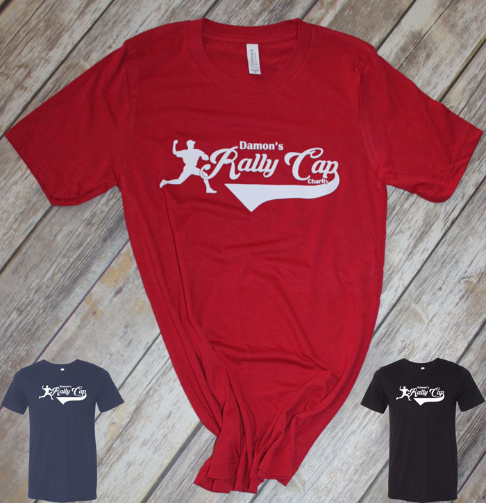 Support Damon's Rally Cap by purchasing a shirt! Fifty percent of sales goes to Damon's Rally Cap. Make sure to select pick-up if local to Platte City. |
